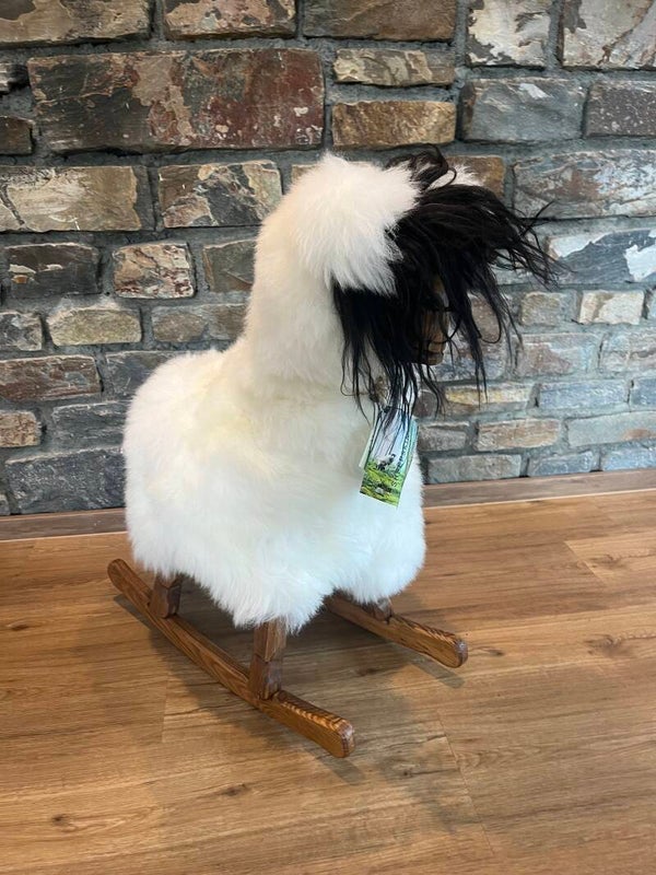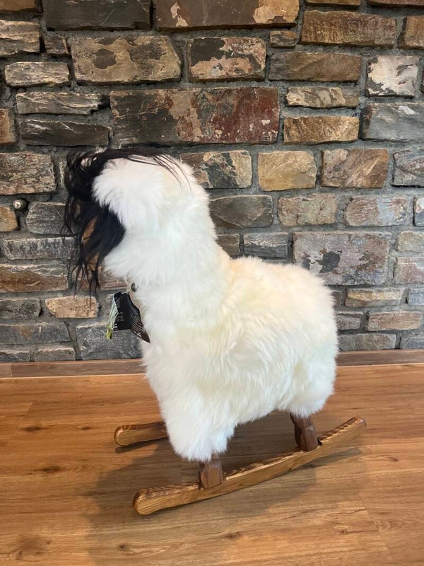 Handgschnitztes Unikat aus Vollholz u. echtem Schaffell, Höhe ca. 70cm, Breite 35 - 38cm, Länge ca. 60cm